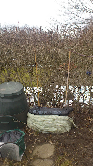Jeg købte engang over 100 buer på QXL, så en tunnel er det også blevet til - Den dækker over gulerødder, løvstikke og flerårig Rucola m.m - til næste år skal urtebedet også i tunnel - kurvene indeholder delvist omsat kompost eller hestemøg, de skal bruges til tomater og græskar m.m