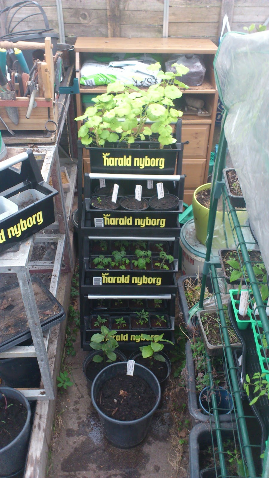 I morgen går turen ud til Bjarne og jeg har fundet lidt frem jeg gerne vil bytte med, puttet det i tingkasser som passer perfekt til min nye plantereol - Tak søde datter...