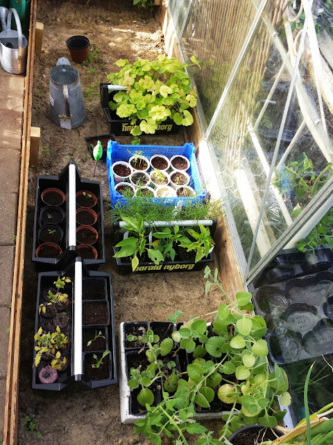 Det forspirrede er kommet ud af drivhuset og skal blandes med det selvsåede, lad mig bare få mere af det til næste år.