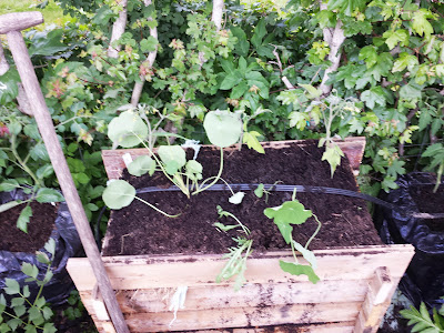Grønkålen blomstrer endnu mere og det gør den nye grill i sin kasse også ;o(