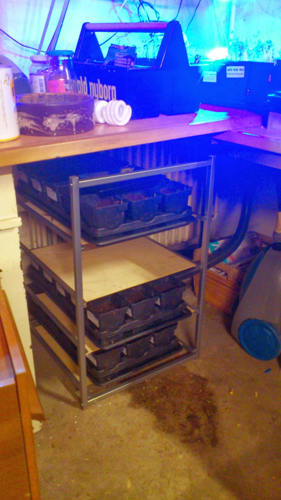 Det blå lys er godt til spirring og lige det jeg havde brug for, her er det årets spireprøver af Lykkeposefrøene der får lidt blålys