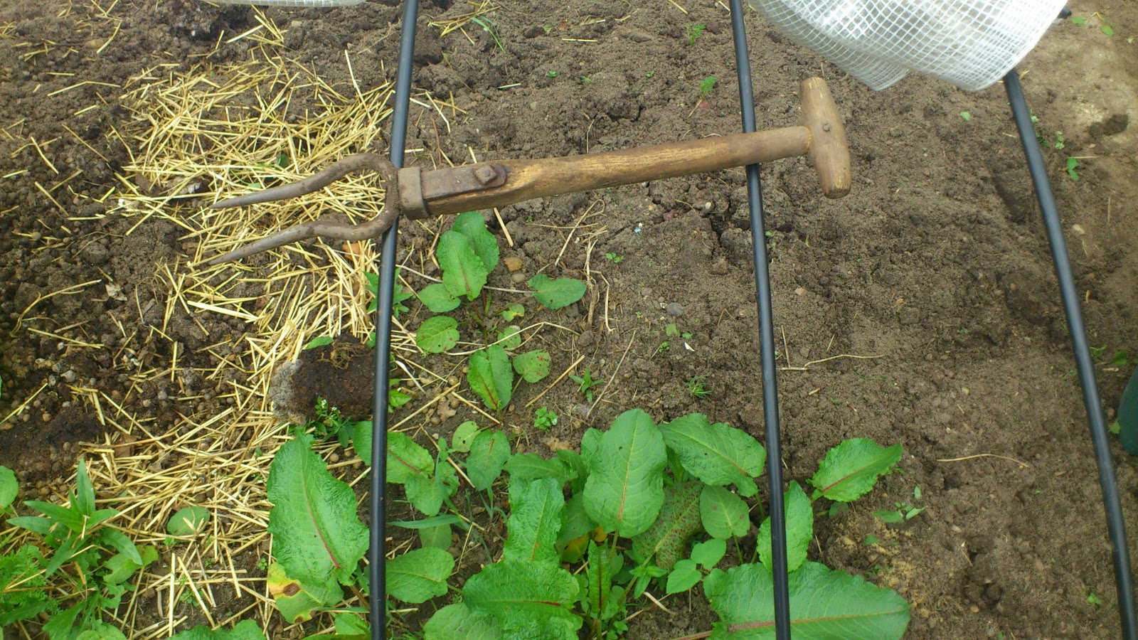 Under arbejdet med at løsne Skræpper især men også andet ukrudt, kom jeg i tanke om et gammelt stykke håndsmedet værktøj jeg havde fået forærende sidste år, en essesmed havde fortalt mig at den var til at løsne roer med, når man i gamle dage tog dem op med håndkraft, skaftet var dog noget kort efter hans mening
