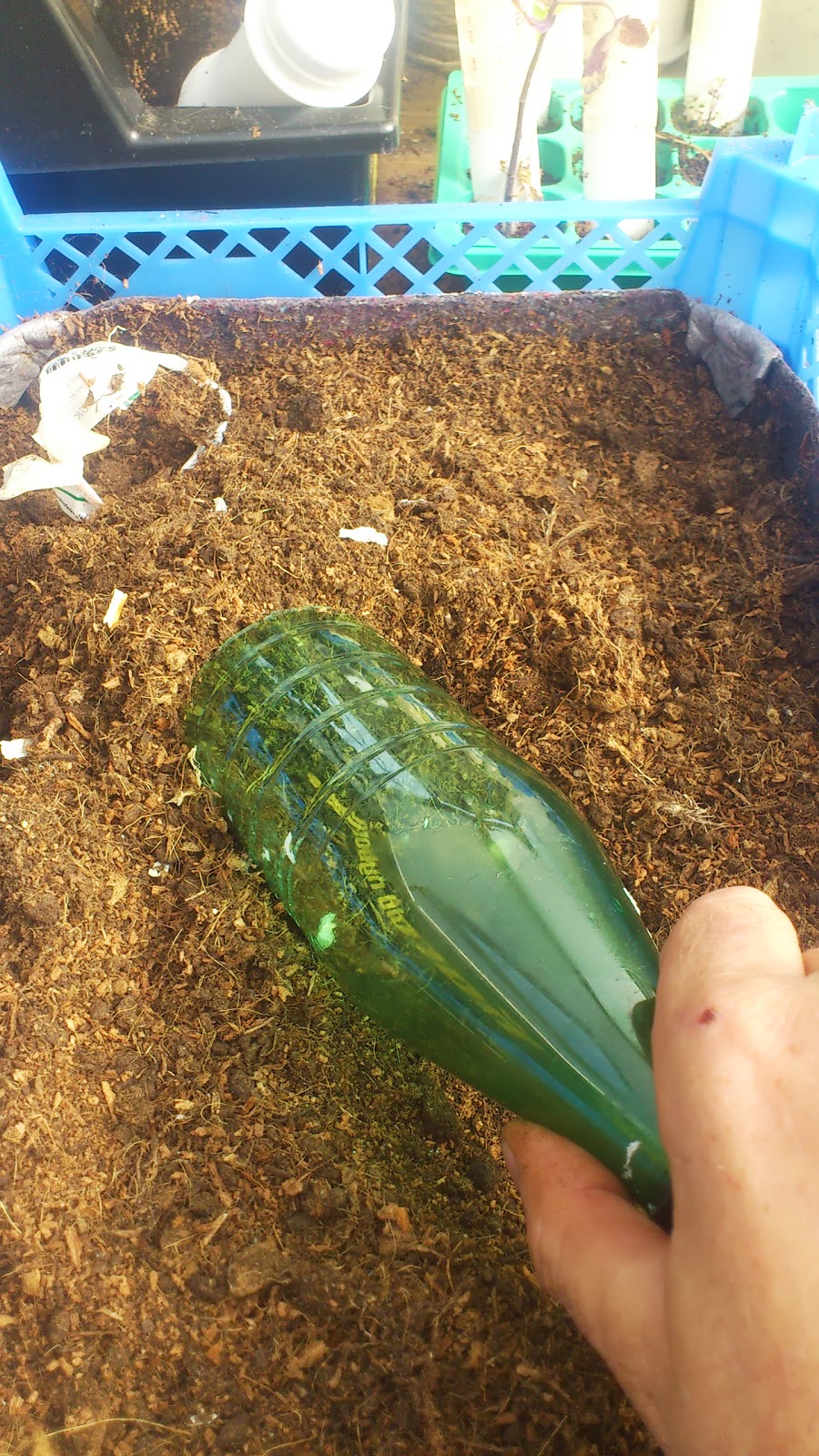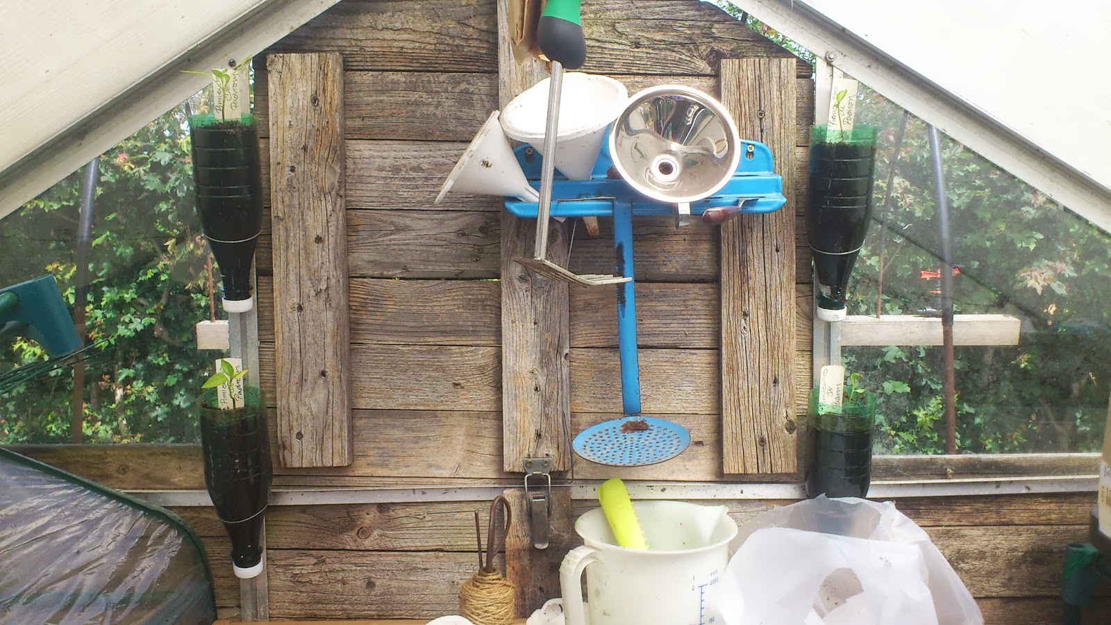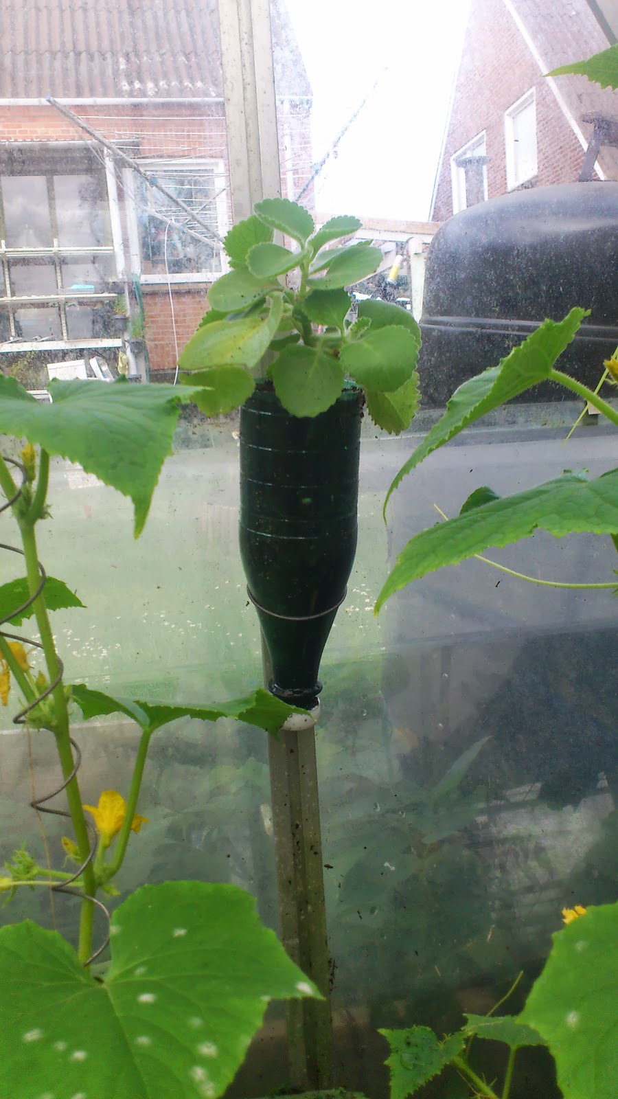 Stor tak til leverandørene som igen leverede materialerne til ugens Plastikudfordring nemlig at udnytte siderne på drivhuset uden at skulle opsætte hylder