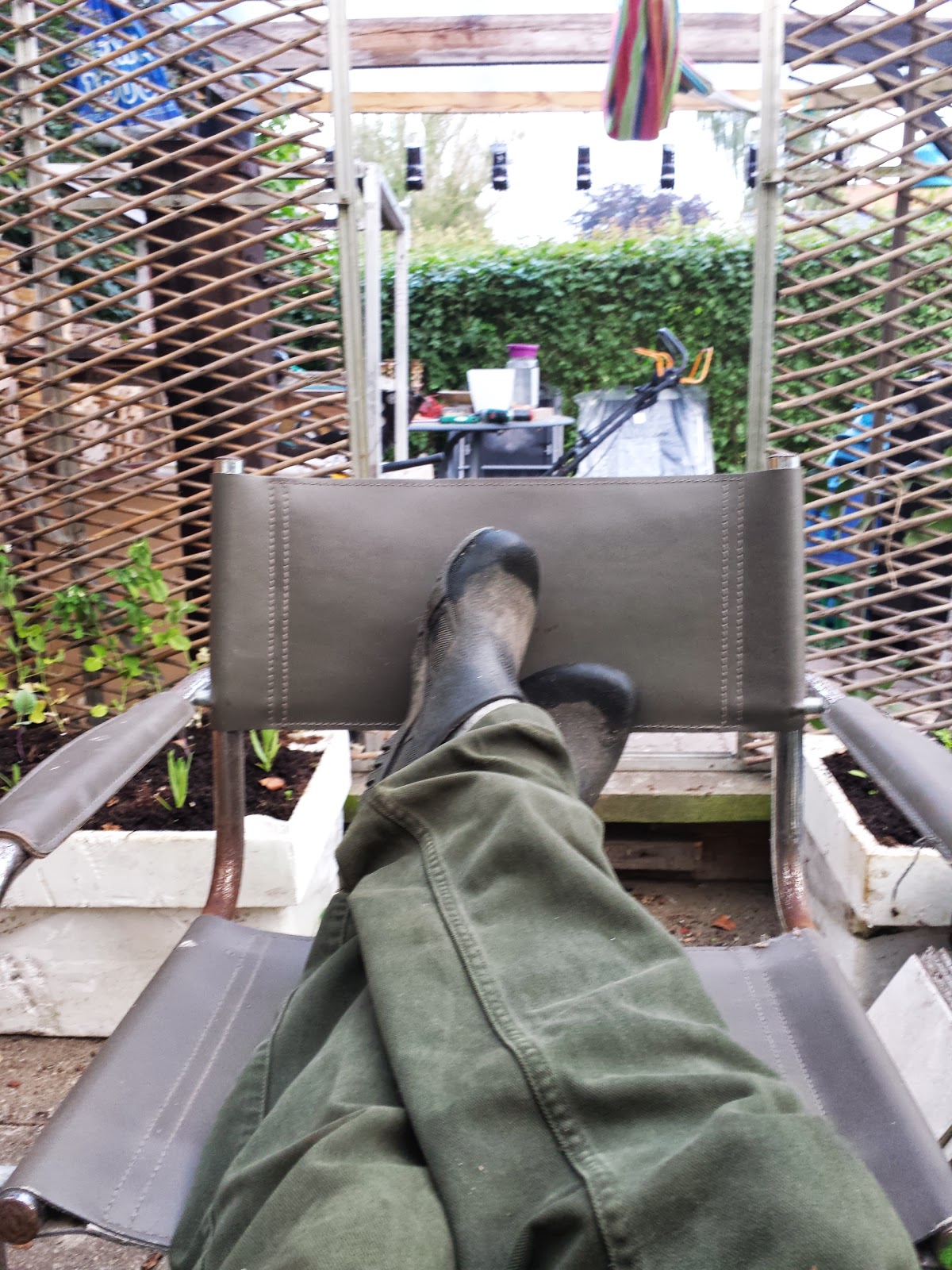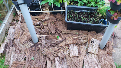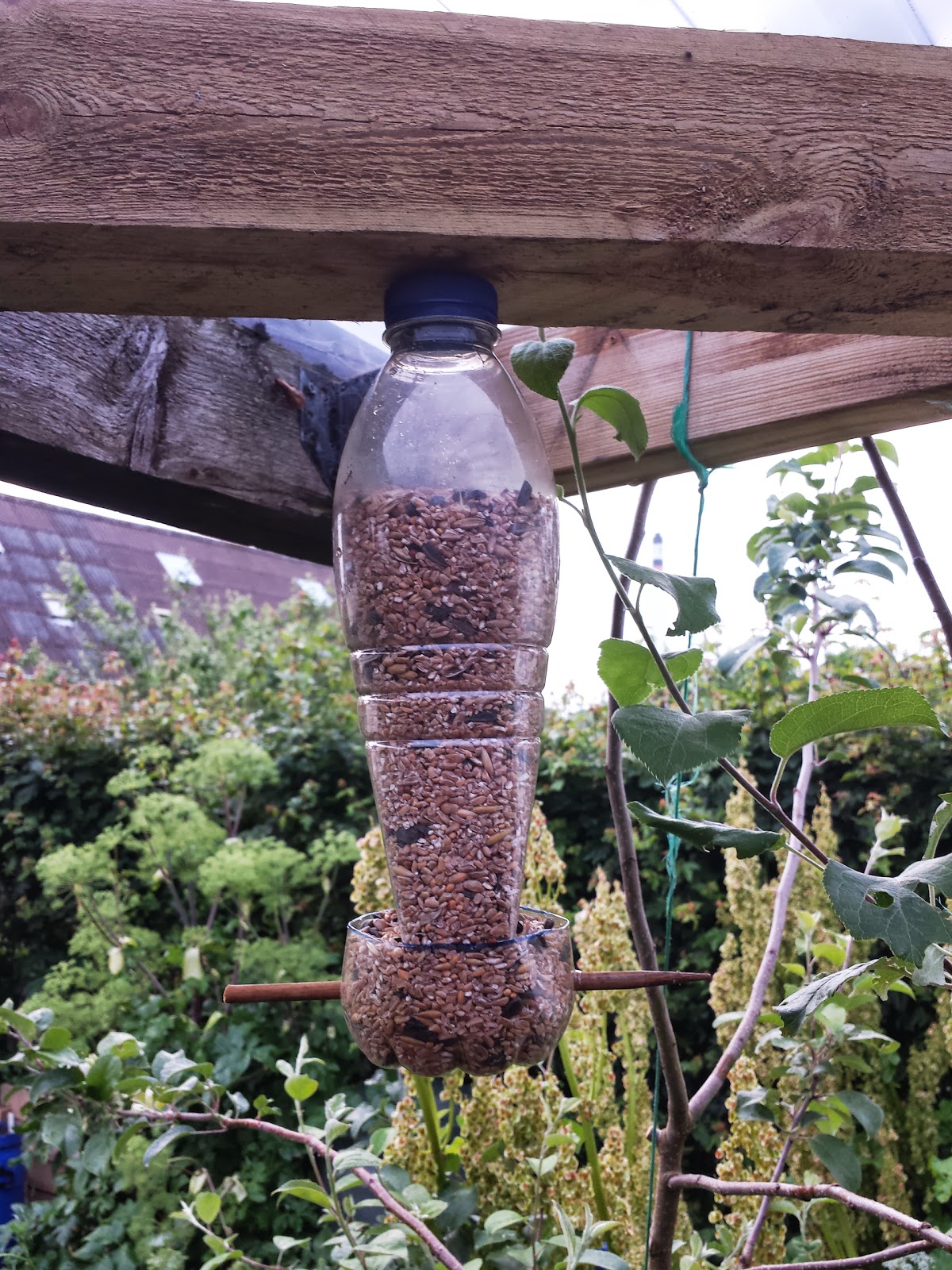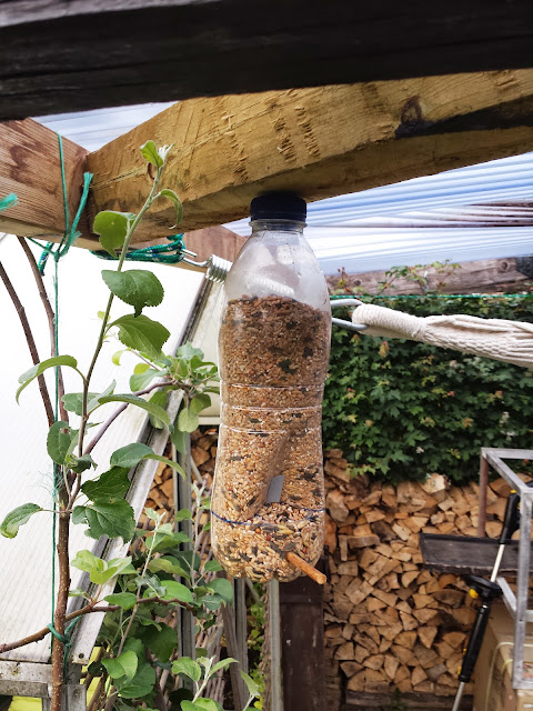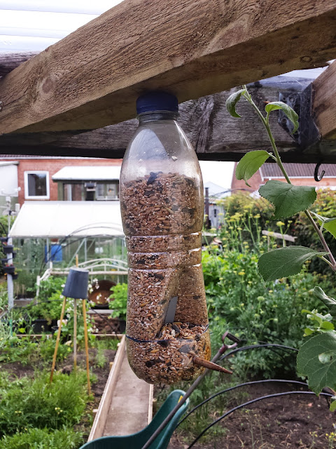 Jeg har også den flerårige rucola, i år havde den besat en stor del af det ene bed så det nyder kaninen - Fuglefoder tingen er opdateret med en af de der dimser man bruger til at lukke postposer med, tapen kunne ikke holde, men nu virker det og der festes hver aften når fuglene spiser og drikker vand