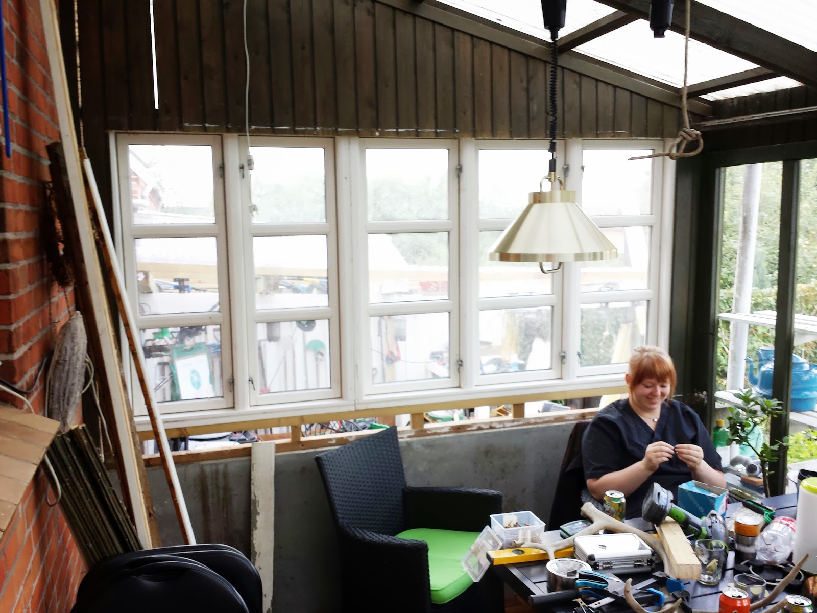 4. Hvor er det flot med de nye genbrugsvinduer. De giver en dejlig stemning til rummet. Det var da en invitation der var noget ved, minder med børnebørn er noget ganske særligt.