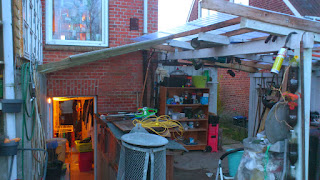 Lidt arbejde i uderummet blev det også til da jeg fik et thermovindue for at fjerne det, hvem kan ikke komme til at mangle glas i disse tider, så det blev lagt på lager over kældertrappen og betonstøbebordet så der ikke regner her mere