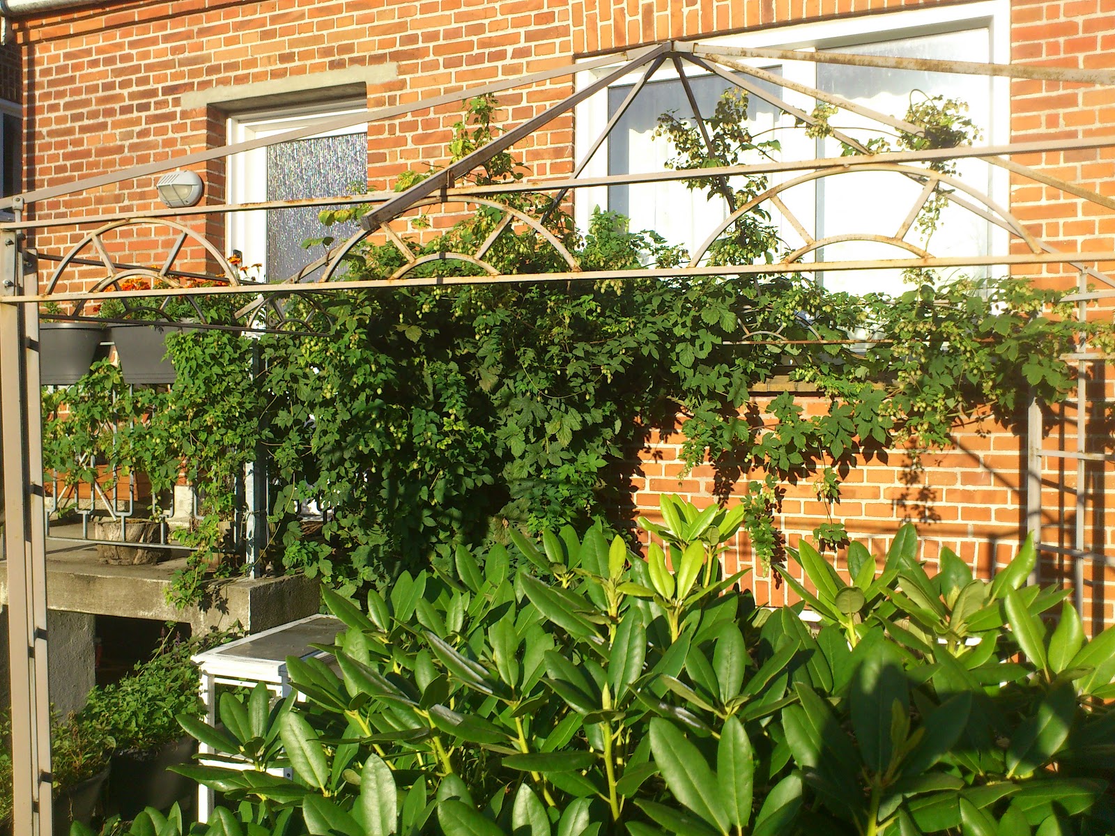 Her ses humlen i vores forhave i foråret 2013, hos os bliver den omkring 5 meter og betegnes generelt som lille, noget de fleste kan få plads til
