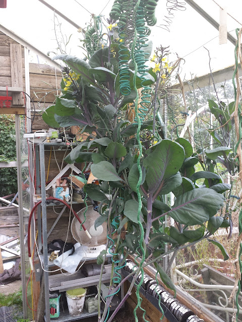 Nå men inde i drivhuset skete der ting og sager året efter, kålen overtog en stor plads i den ene side af drivhuset og jeg turde ikke flytte den - så den fik sin vilje og en masse plads, selvom jeg flere gange snørede den sammen, da den havde 3 grene