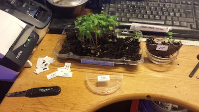 Andre 25 blev sat i Petriskåle i frøhulen og resten kommer i drivhusene i morgen. Jeg er sgi spændt på hvad fremtiden byder, det er jo en plante der vil noget på vores breddegrader uden det der LED'e kunstige lys ;)