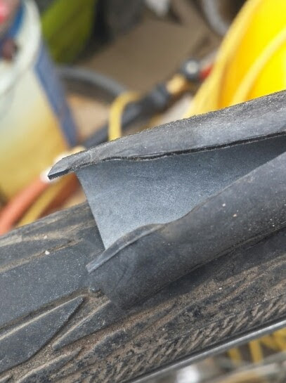 Slangen var revnet så jeg klippede stykket af for at kunne fjerne slangen uden at skulle afmontere baghjulet